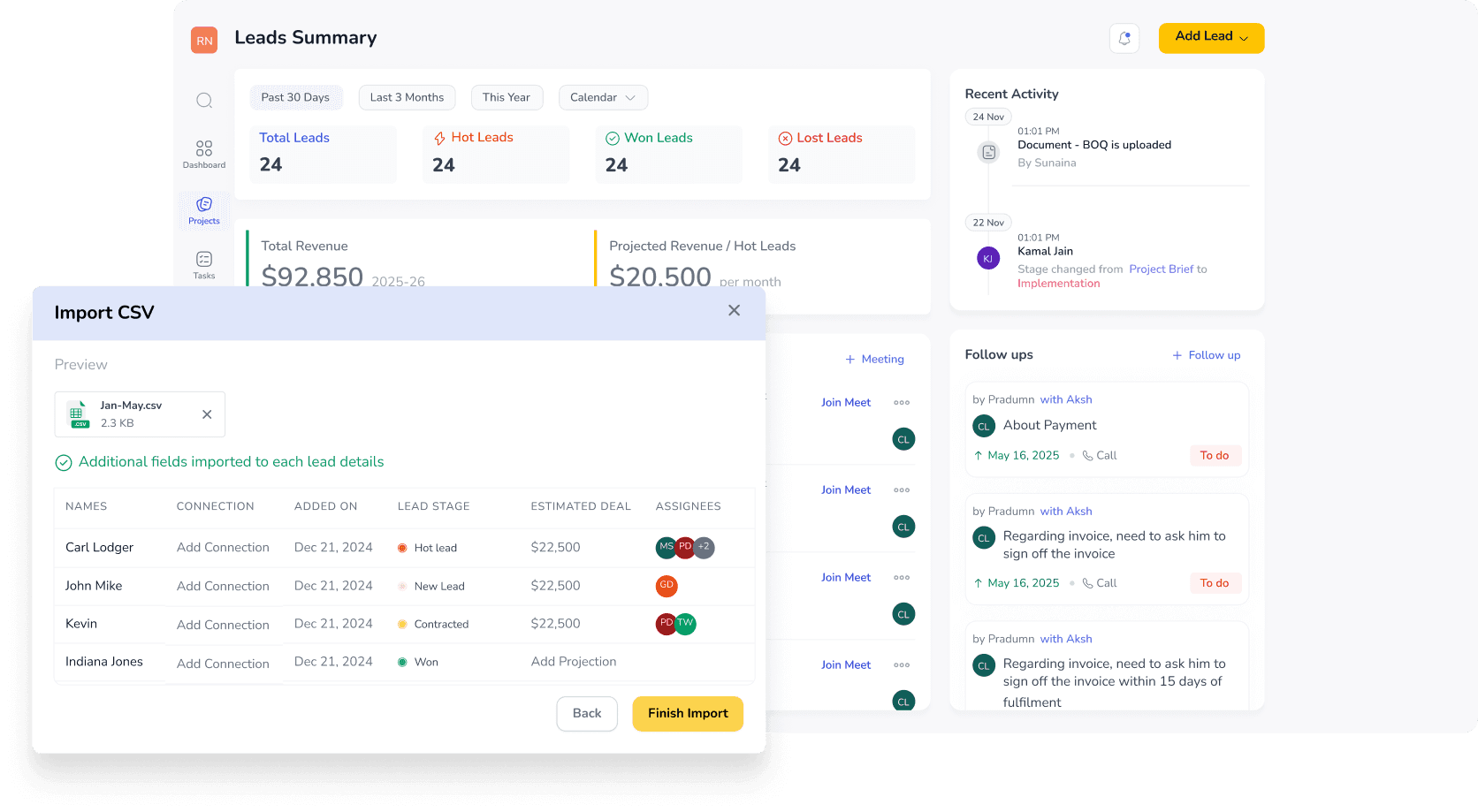 All your leads, tasks, schedules, and billing in one workspace with AI handling follow-ups and updates so every project stays on track.